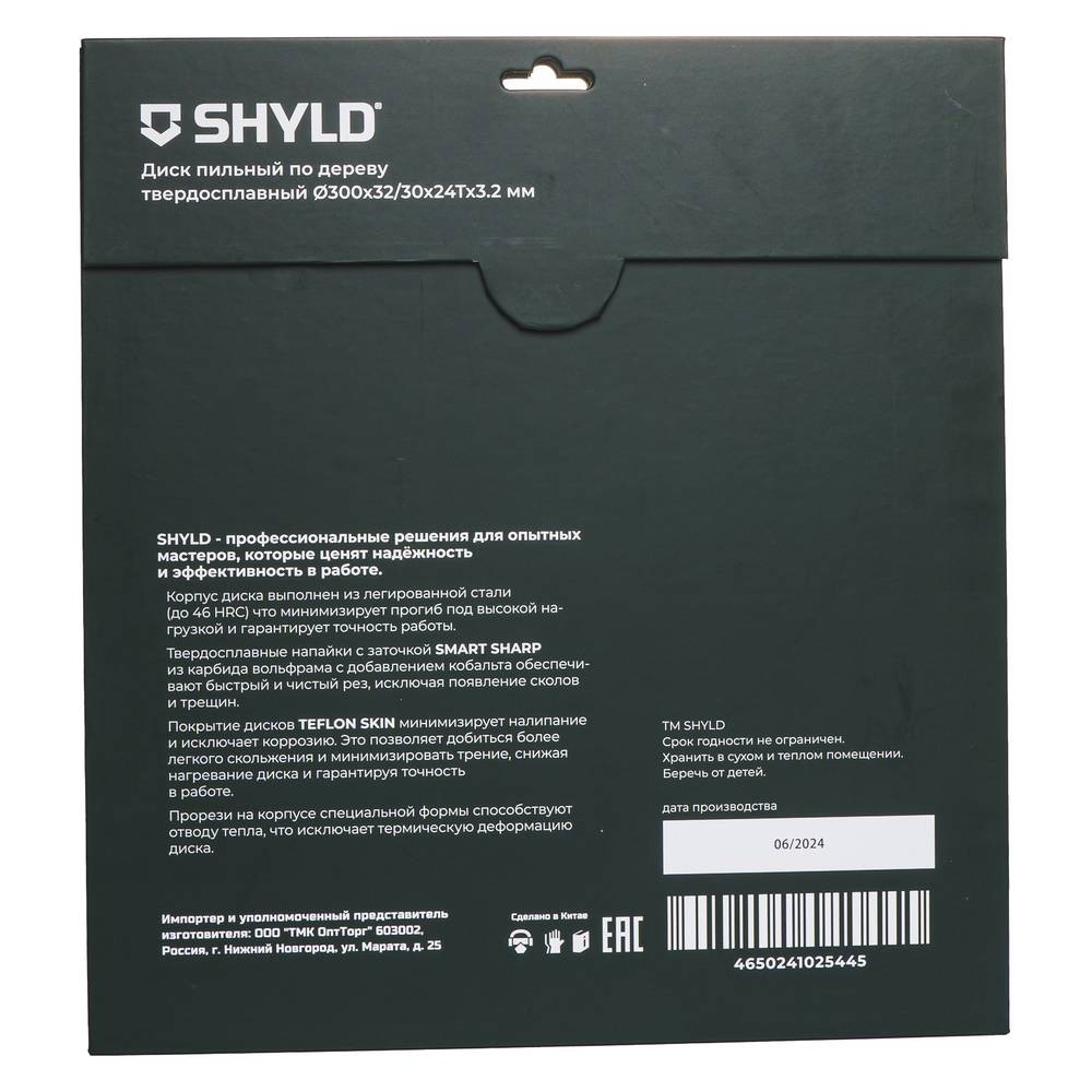 Диск пильный по дереву SHYLD 300х32/30мм 24Т (20290) обеспечивает быстрый рез древесины и ДСП. Диск изготовлен из высококачественной стали и затем закален до значения 46 по шкале твердости Роквелла. Твердосплавные напайки с заточкой SMART SHARP обеспечивают быстрый и чистый рез, исключая появление сколов на обрабатываемом материале. Тефлоновое покрытие диска значительно снижает нагревание диска и делает работу более чистой.