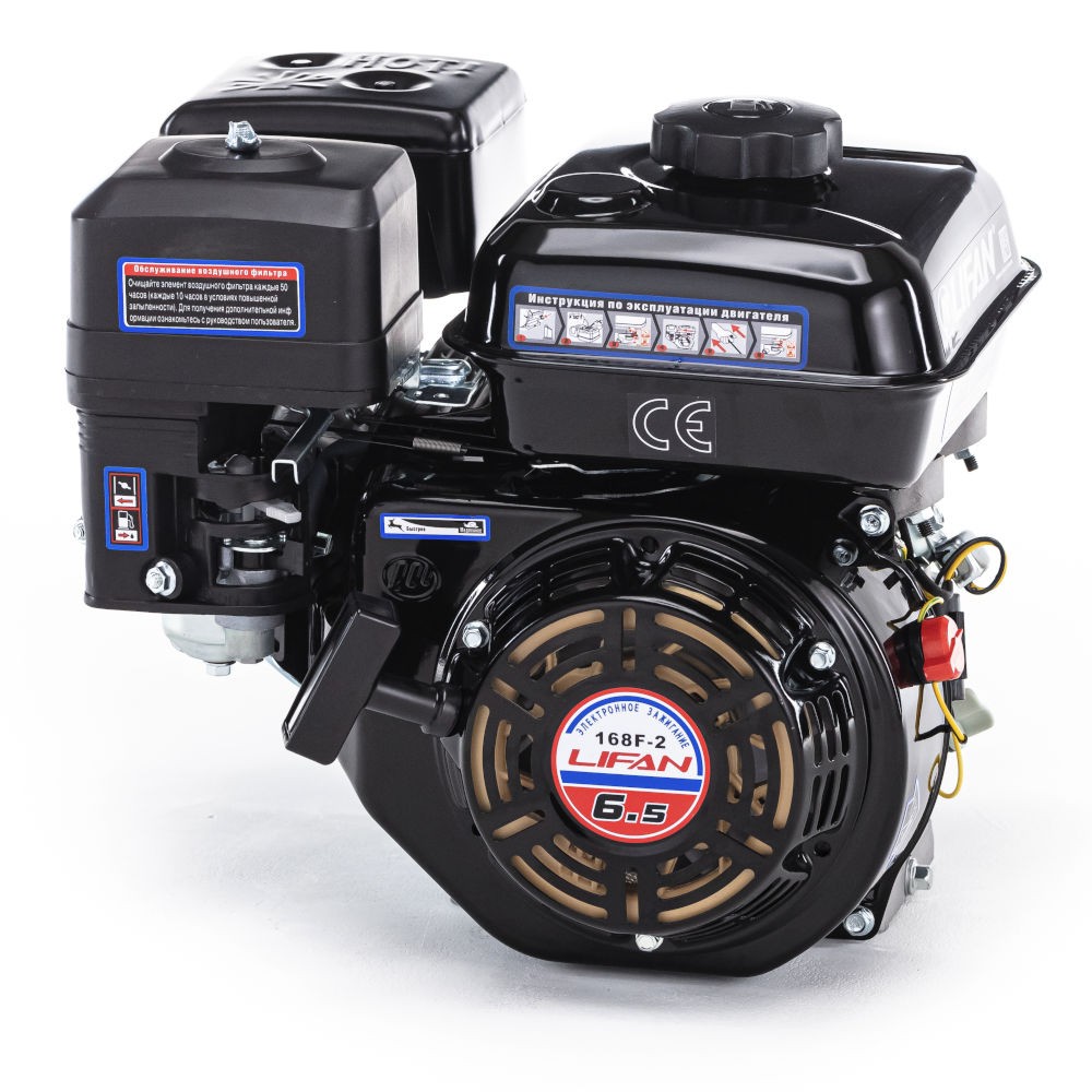 Двигатель бензиновый LIFAN 168F-2 устанавливается на малую технику бытового применения. Двигатель отличается своей долговечностью, экономичностью и простотой в использовании. Благодаря чугунной гильзе цилиндра в двигателе, увеличился в разы моторесурс. При достижении критичного уровня масла срабатывает установленный датчик, который глушит мотор. После этого завести двигатель можно только при достаточном уровне масла.