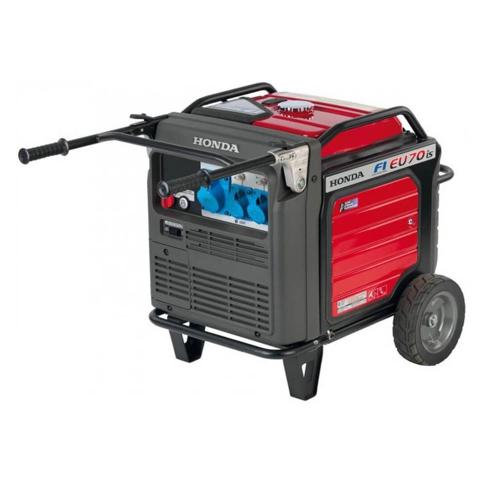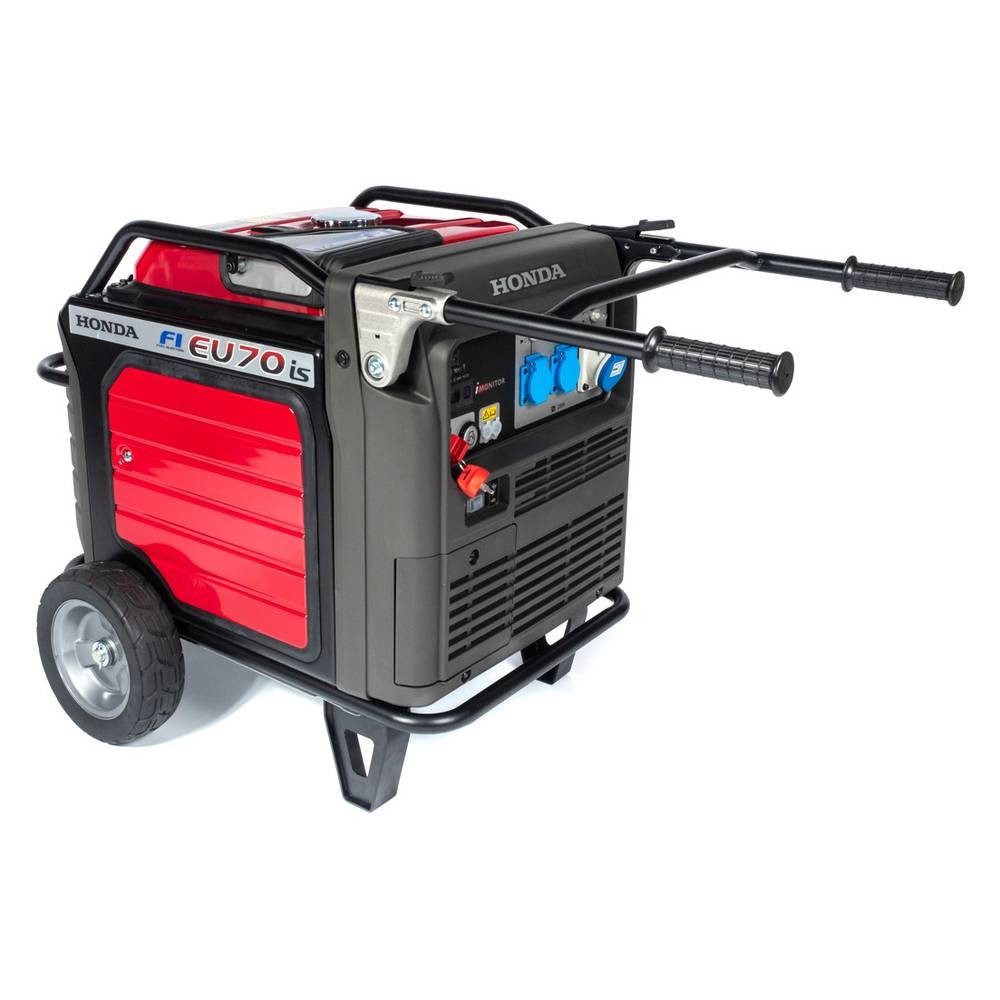 <div class="catalog-product-attributes__white-gradient"></div> Генератор бензиновый инверторный Honda (Хонда) EU 70 iS подойдет для обеспечения качественным электрическим током частных домов, мобильных медицинских служб и других организаций, где требуется подключать высокочувствительную электронику. Бензиновая миниэлектростанция Honda EU70 iS для регулировки напряжения использует инвертор, поэтому подключение к ней не повредит даже самым высокотехнологичным приборам.<br> Для тихой работы предусмотрен шумозащитный кожух, благодаря чему бензоэлектрогенератор Honda EU 70iS не мешает окружающим отдыхать и работать. Устройство можно без труда транспортировать к нужному месту, поскольку оно комплектуется выдвижными рукоятками и колесами. Максимальная мощность генератора составляет 7 кВт.<br> Бензиновый электрогенератор Honda EU70iS легко и быстро запускается одним поворотом ключа благодаря электрическому стартеру. Также есть возможность запустить его вручную при необходимости. Время автономной работы на одном полно |