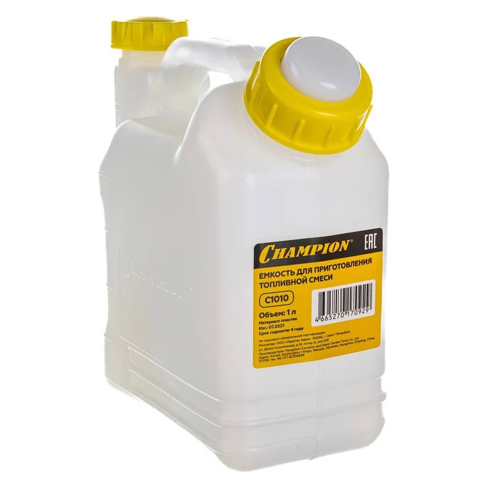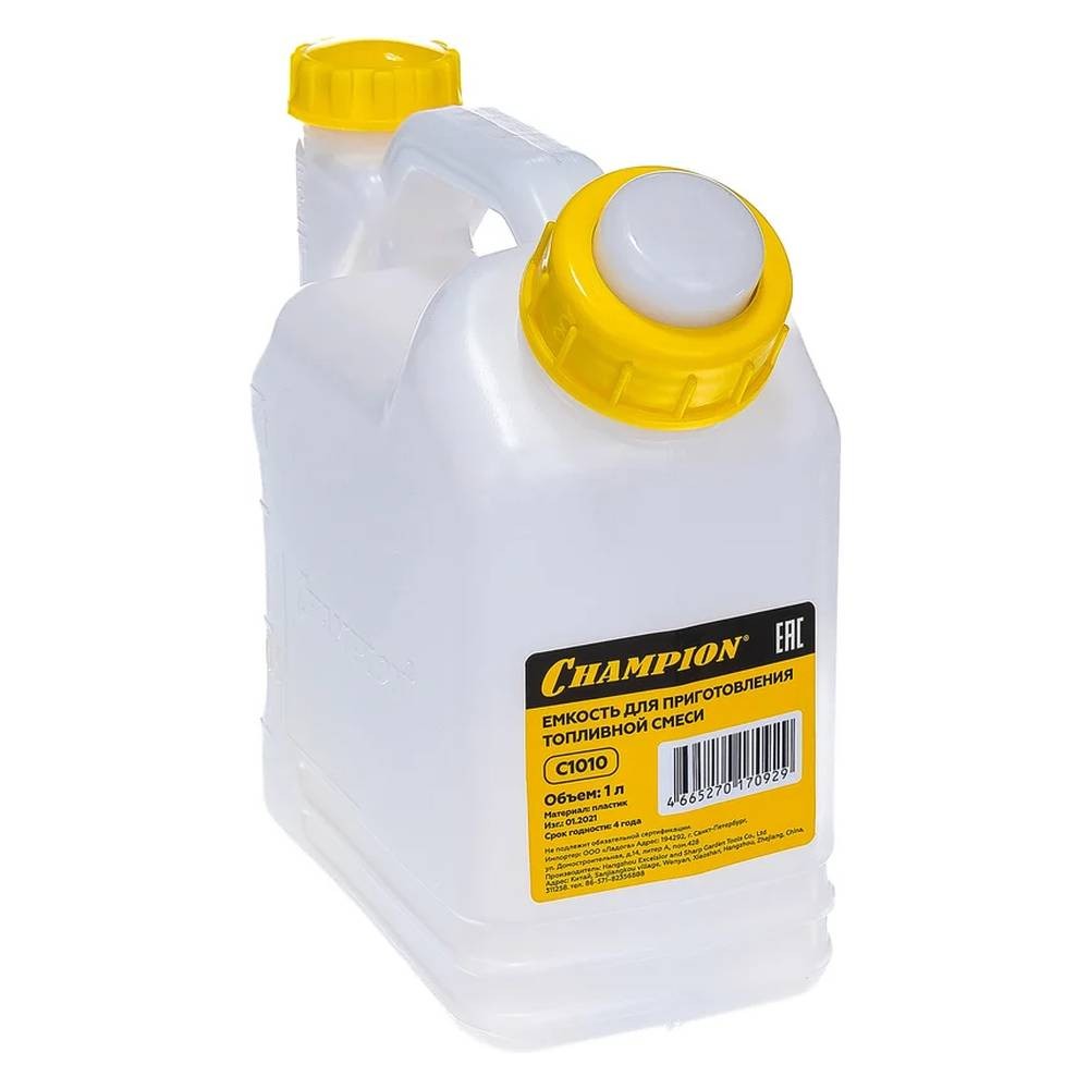 Канистра Champion комбинированная 1/0.04л предназначена для смешивания масла с бензином и дальнейшего его использования. Оснащена дозатором, в который заливается необходимое количество масла в соответствии с инструкцией для вашей бензотехники. В саму канистру заливается бензин и все тщательно перемешивается. Носик для удобной заливки поставляется в комплекте.