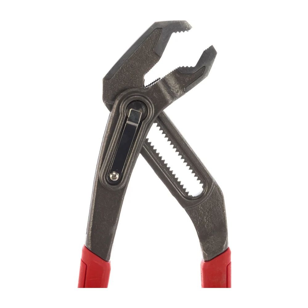 Клещи Milwaukee переставные 250 мм ( 210) имеют множество ступеней для раскрытия губок. Это упрощает работу с крепежом большого размера. Зубья закалены до 60 HRC. Имеется кнопка автоматической блокировки. Инструмент подойдет также для работы с заготовками на производстве. Головка используется для снятия заусенцев.