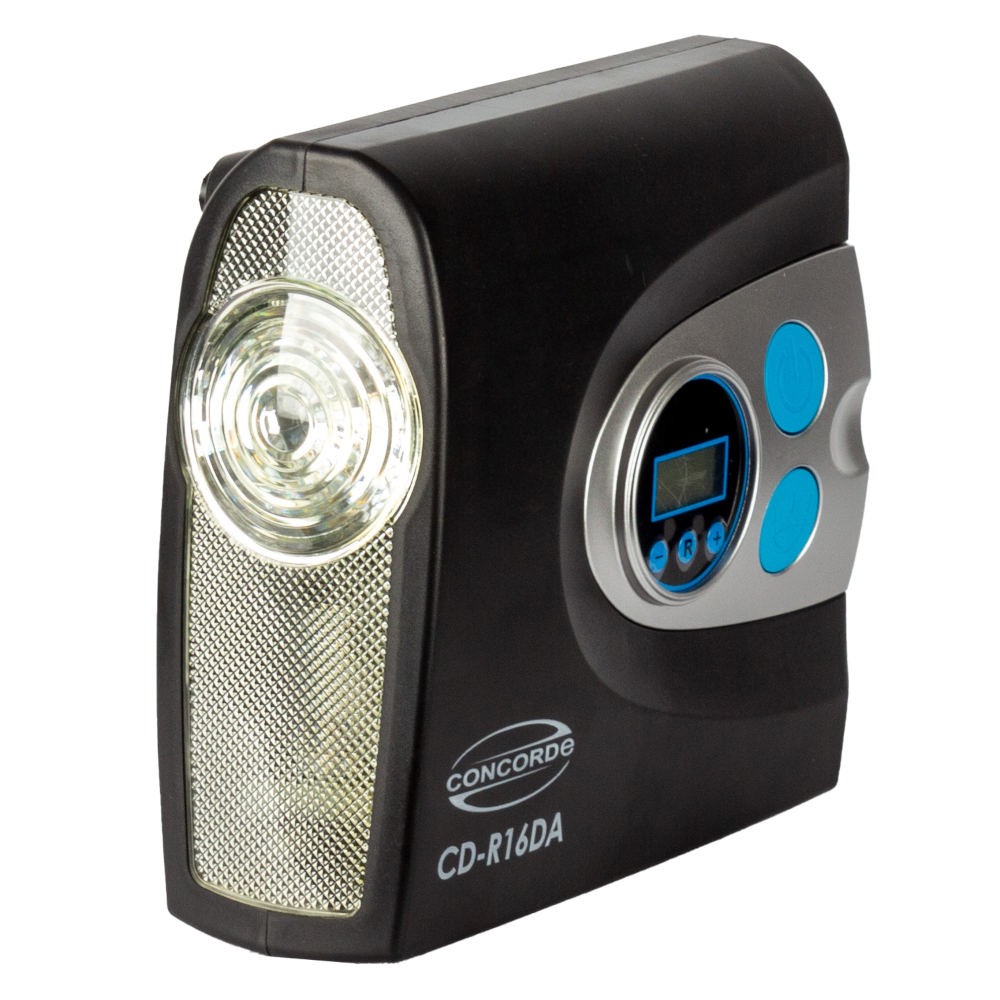<div class="catalog-product-attributes__white-gradient"></div> <p class="product-page__description-paragraph"> Компрессор Concorde CD-R16DA предназначен для подкачки шин легковых автомобилей и внедорожников. Устройство характеризуется высоким давлением на выходе (до 10bar), низким уровнем шума и вибраций, малыми габаритными размерами и весом, а так же превосходным качеством изготовления. Компрессор так же подходит для накачивания резиновых лодок, надувных игрушек и матрацев.</p> <br> <ul class="catalog-product__features-list ul-list"> <li class="catalog-product__features-item">Высокая производительность - 22л/мин</li> <li class="catalog-product__features-item">Максимальное давление - 10бар</li> <li class="catalog-product__features-item">Низкий уровень шума и вибрации - благодаря сбалансированной конструкции</li> <li class="catalog-product__features-item">Простое использование - компрессор подключается к прикуривателю автомобиля и не требует специальных навыков и инструментов</li> <li class="catalog-p |
