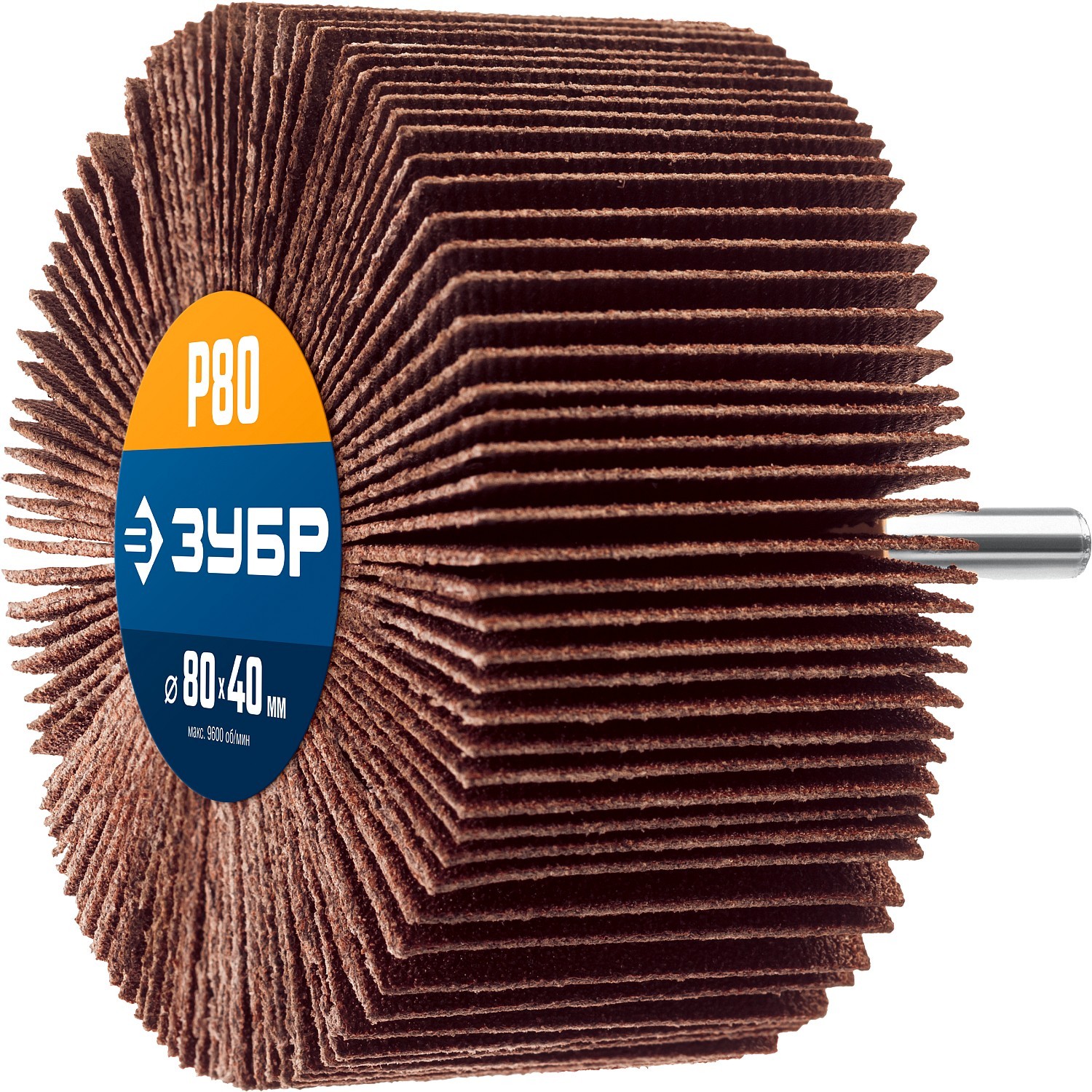 Круг лепестковый шлифовальный ЗУБР Профессионал 80х40мм P80 на шпильке 6 мм 36604-080