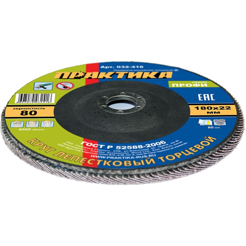 Круг шлифовальный Практика 180х22.2мм Р80 (032-416)