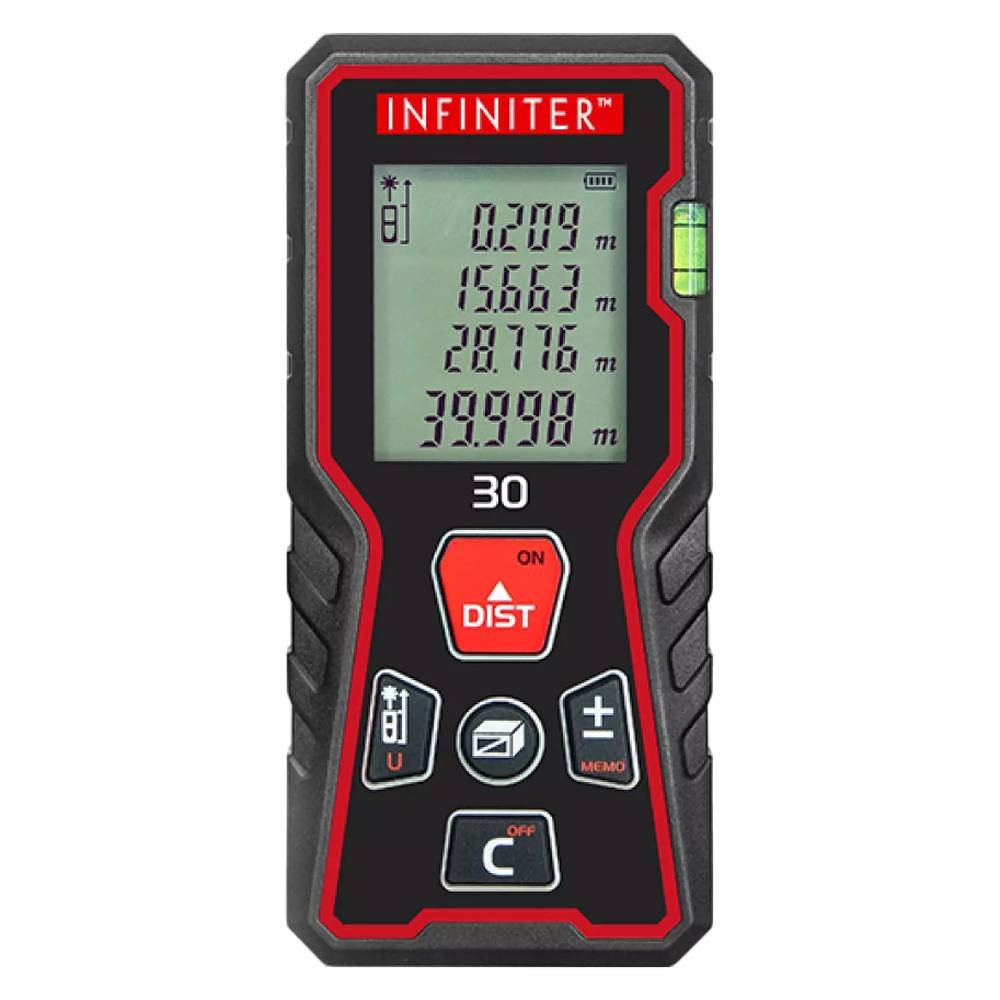 <div class="catalog-product-attributes__white-gradient"></div> <p class="product-page__description-paragraph">Лазерный дальномер INFINITER 30 это современный высокоточный измерительный инструмент, который по достоинству оценят профессионалы и домашние умельцы. Прибор оснащен широким набором функций, удобен в эксплуатации, имеет надежно защищенный корпус. С его помощью вы сможете рассчитать площадь и объем помещений, земельных участков и других объектов. Для проведения непрерывных измерений пригодится функция треккинг. Режим «косвенного» измерения по теореме Пифагора позволит произвести замеры в труднодоступных местах. INFINITER 30 отличается простым и понятным интерфейсом. Управление осуществляется пятью крупными кнопками, каждая из которых отвечает за соответствующую функцию. Благодаря эргономичному дизайну корпуса INFINITER 30 удобно лежит в руке. </p> <br> <ul class="catalog-product__features-list ul-list"> <li class="catalog-product__features-item">Широкий набор функций - автоматический расчет площад |