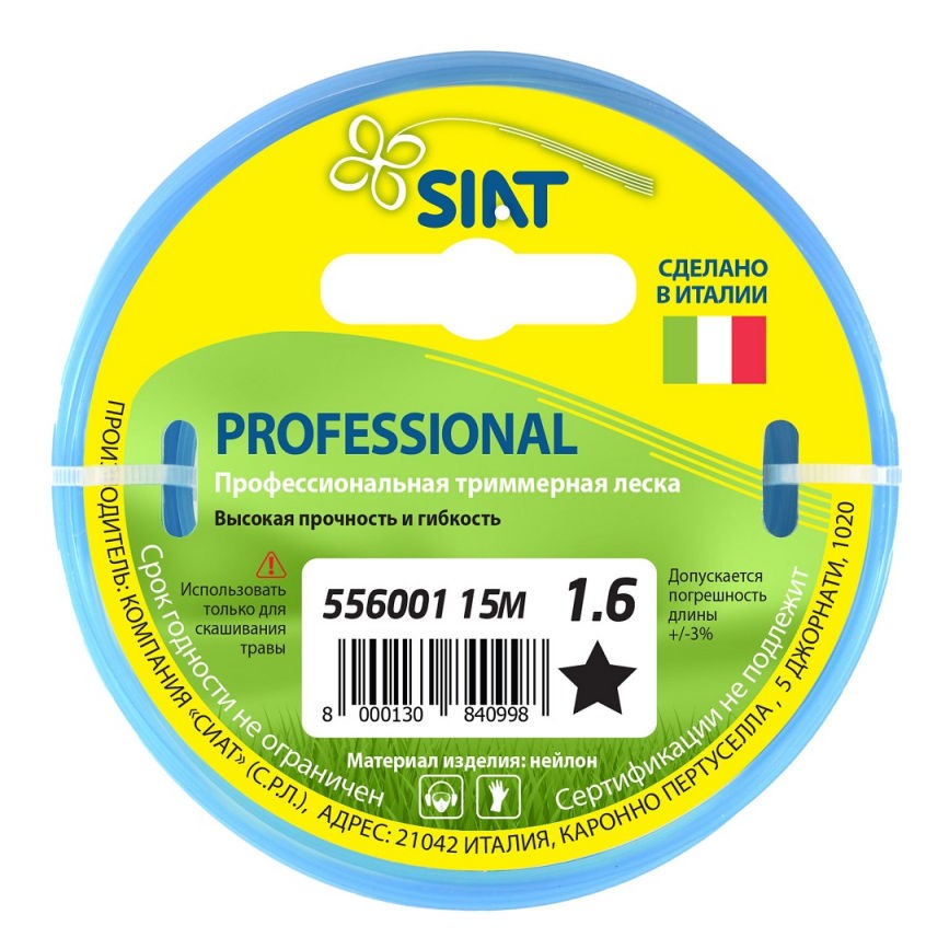 Леска для триммера SIAT 1.6мм звезда 15м (556001)