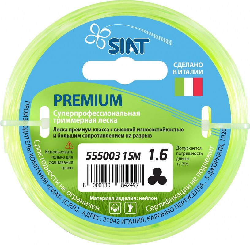 Леска для триммера SIAT Premium 1.6 мм/15м, канат