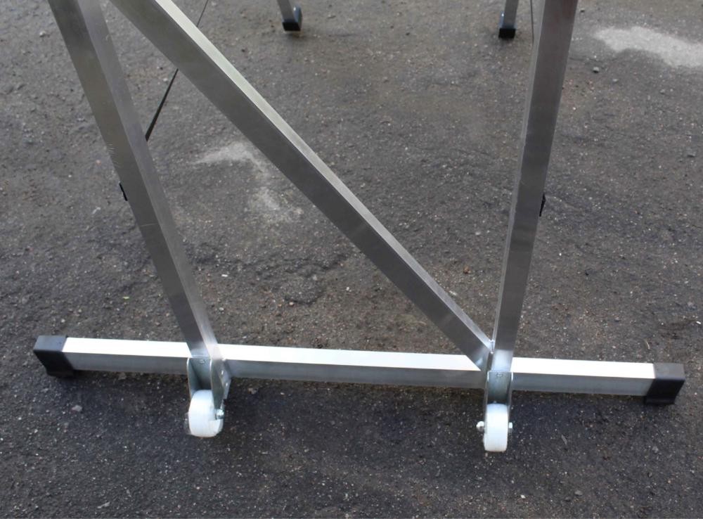 Легкий вес Безопасные ступени из рифленого профиля Площадка из алюминиевого листа "квинтет" Траверса Поручни и ограждение Транспортировочные колеса Складная конструкция |