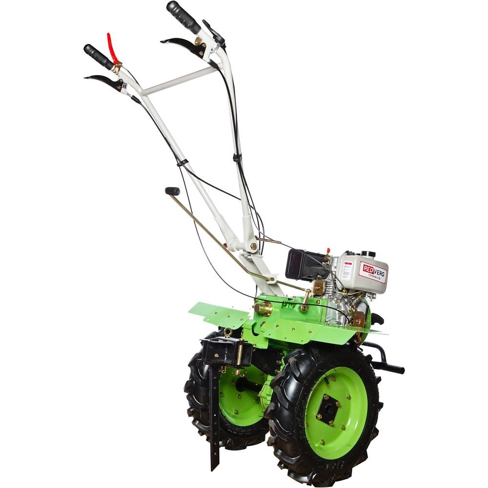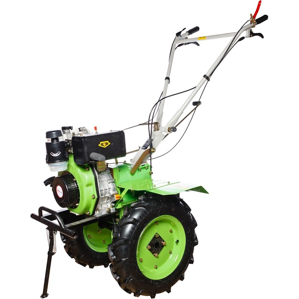 Мощный дизельный двигатель Увеличенная колесная база Большие пневматические колёса Шестерёнчатый редуктор в корпусе из чугуна Вал отбора мощности Усиленная рулевая колонка Дисковое сцепление Усиленный шестигранный вал Дополнительная складная опорная ножка |