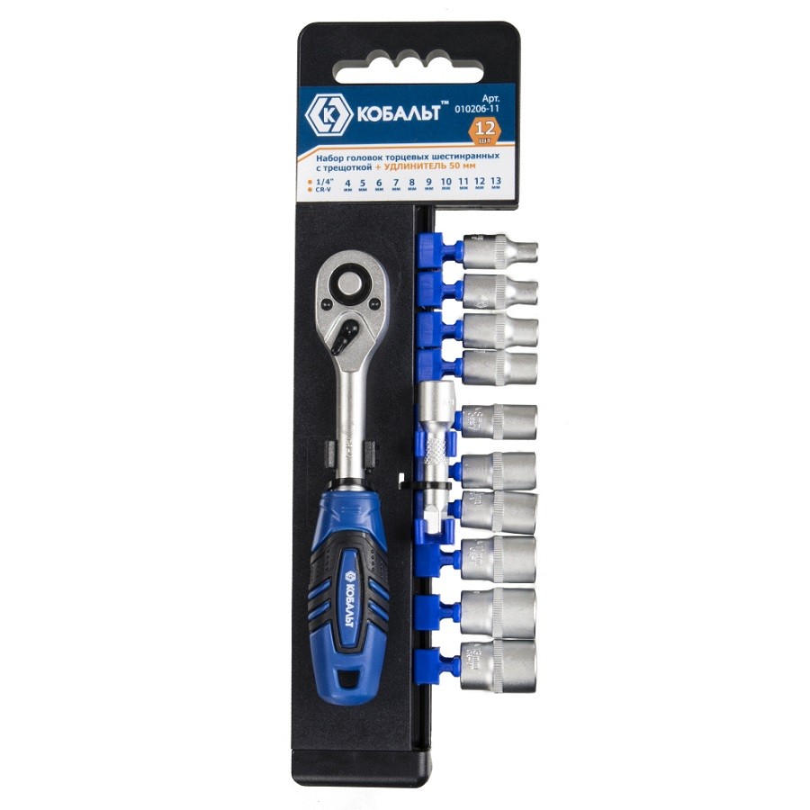 Набор головок торцевых Кобальт с трещоткой 1/4" 4-13мм Cr-V 12шт