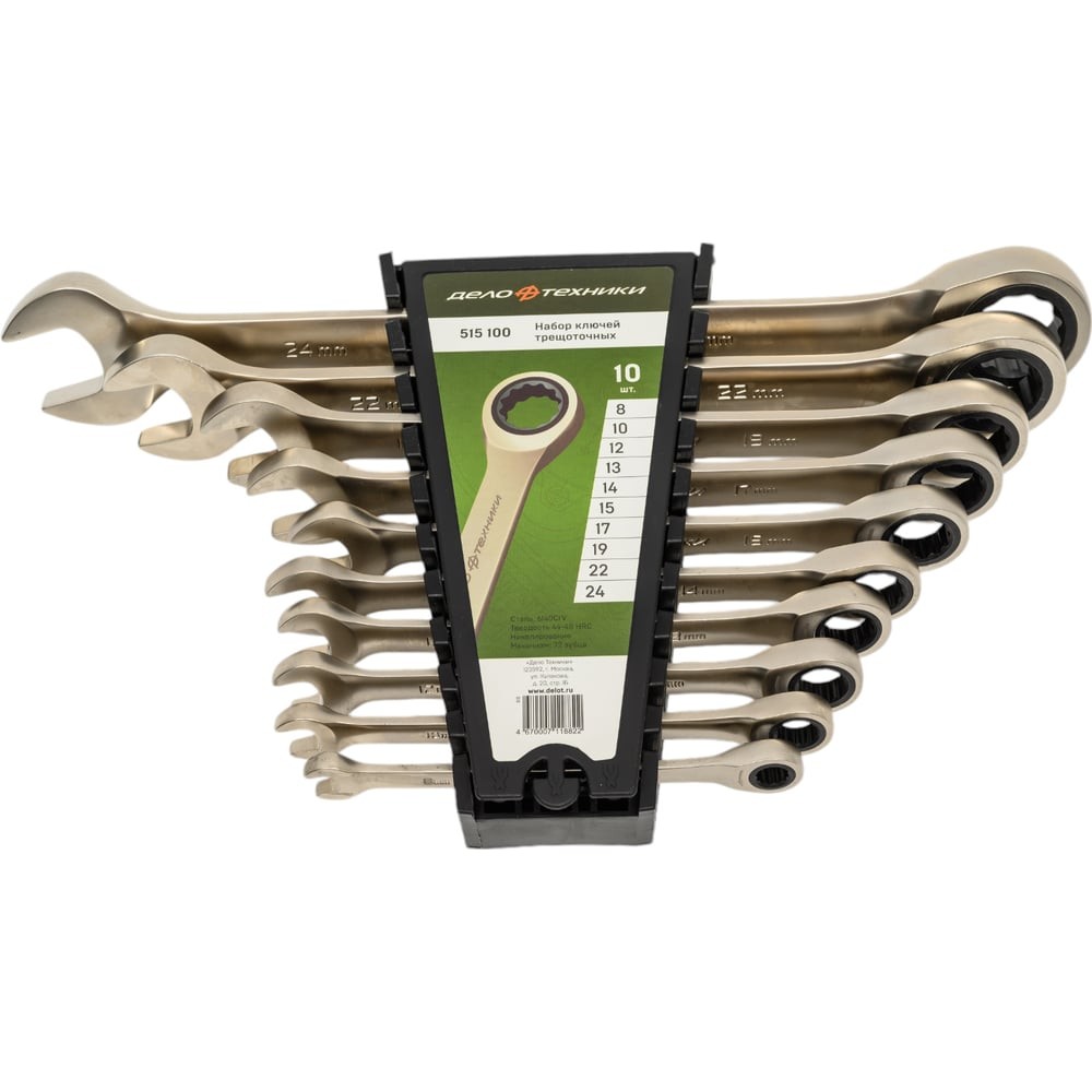 Набор ключей комбиниров. трещоточных 10 шт (8,10,12,13,14,15,17,19,22,24)