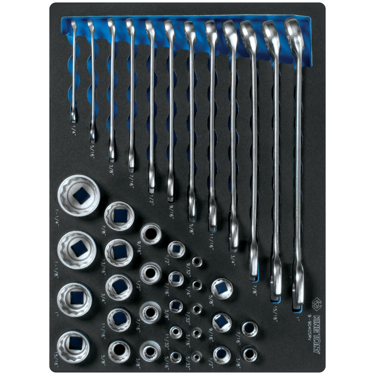 Набор комбинированных ключей, набор торцевых головок 1/4", 3/8", 1/2", ложемент, 40 предметов KING T