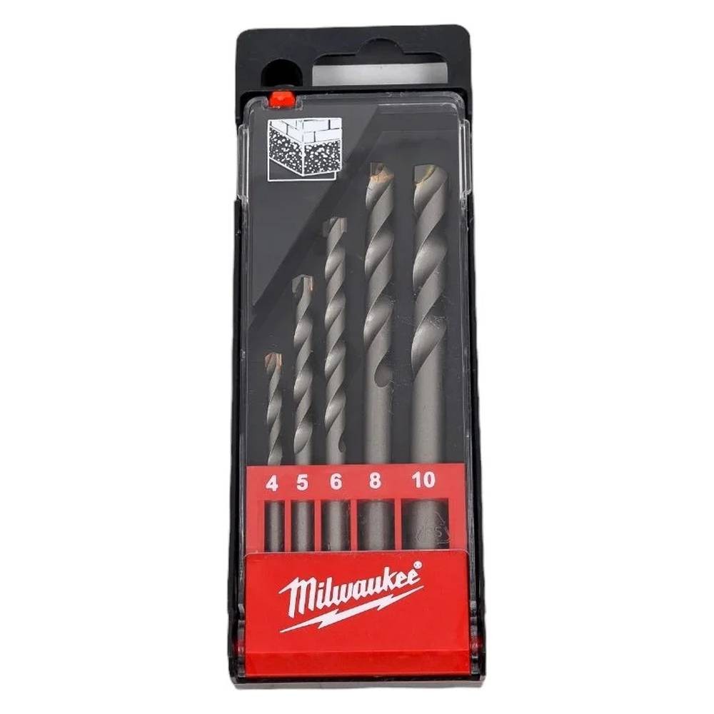 Набор сверл по бетону Milwaukee 4-10мм 5шт (157) с ударным твердосплавным наконечником с алмазным напылением и 2-мя режущими кромками. Для сверления в кирпиче, плитке, мраморе, бетоне, штукатурке, шифере, граните, керамике и в любых видах природного камня.