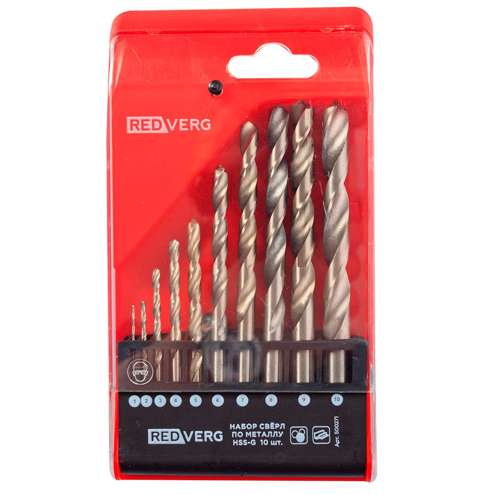 Набор сверл по металлу REDVERG HSS-G 1-10 мм 10шт (500271)