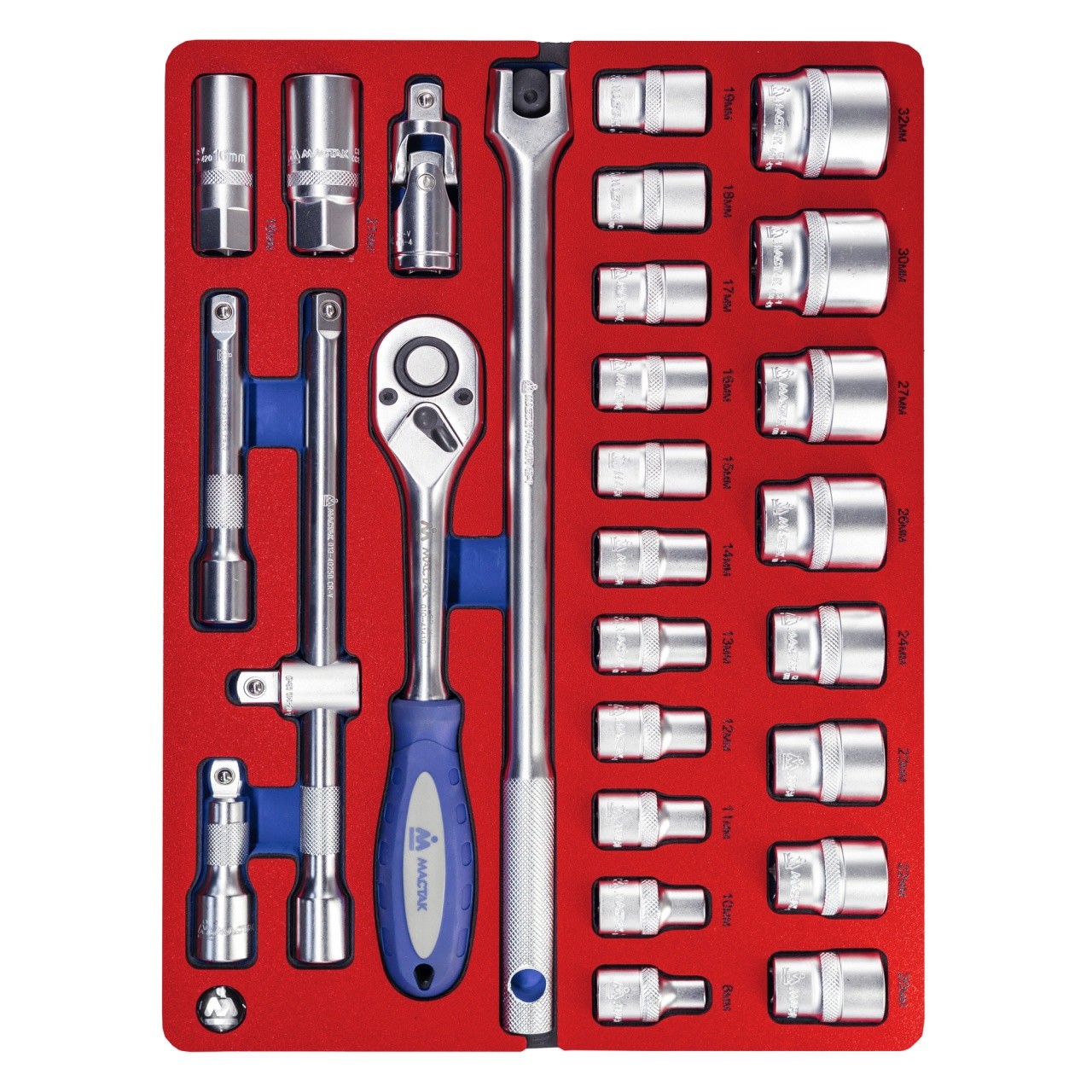 Набор торцевых головок 1/2" с принадлежностями, двенадцатигранные, ложемент, 28 предметов МАСТАК 5-0