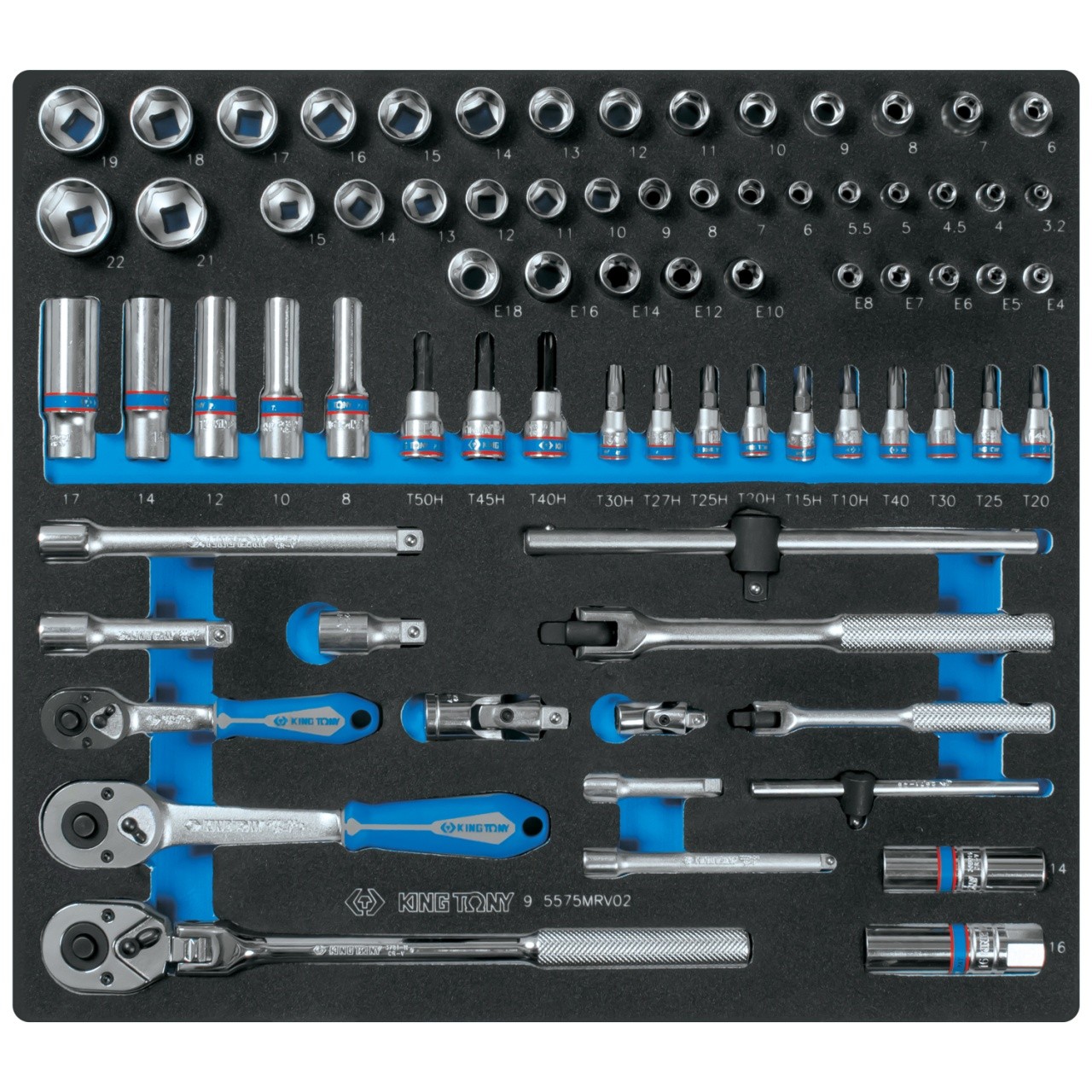 Набор торцевых головок 1/4", 3/8" с принадлежностями, ложемент, 75 предметов KING TONY 9-5575MRV02
