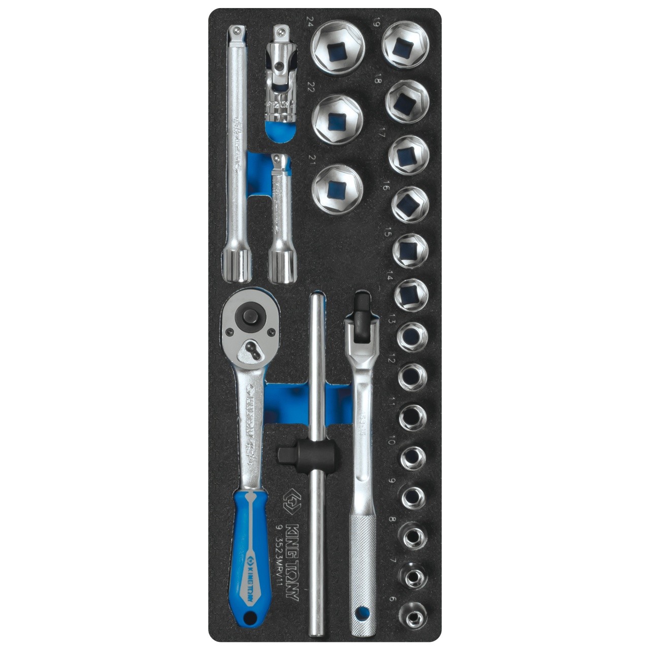 Набор торцевых головок 3/8" с принадлежностями, ложемент, 23 предмета KING TONY 9-3523MRV11