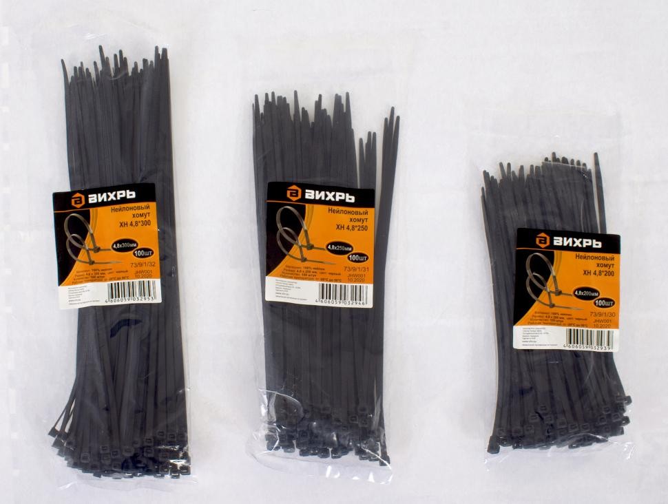 Нейлоновый хомут ХН 4,8х250 Ч