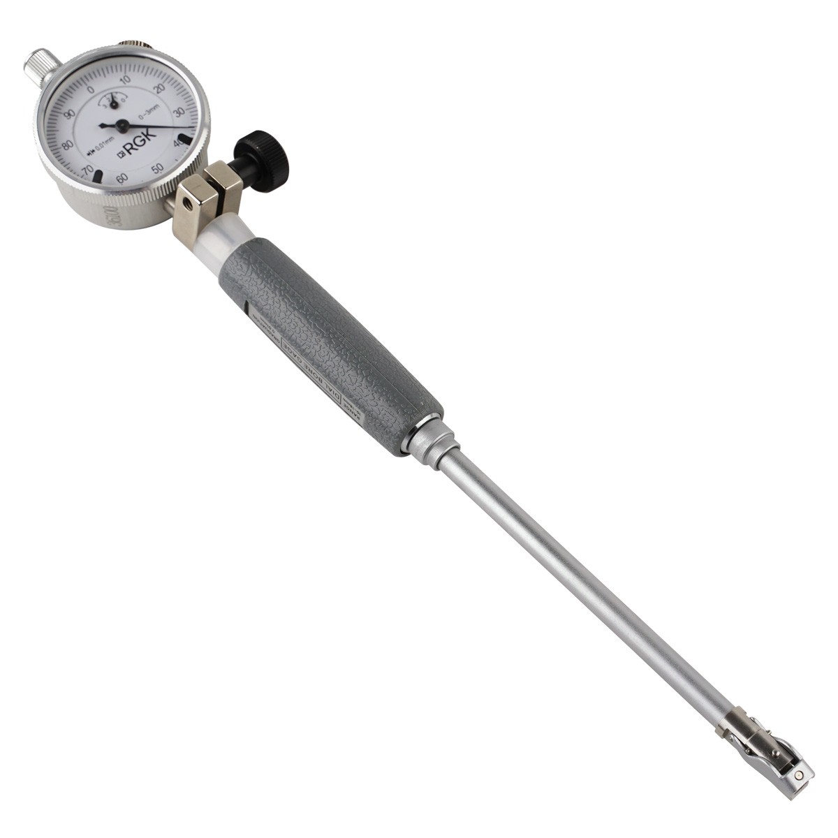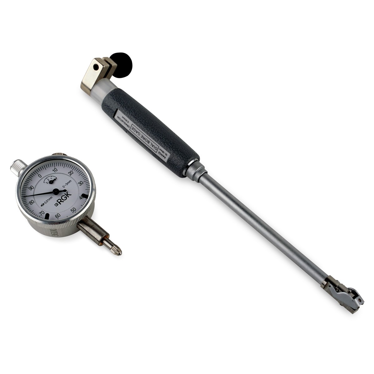 <div class="catalog-product-attributes__white-gradient"></div> Нутромер RGK NI-18 позволяет определять диаметр круглых отверстий и ширину канавок и пазов с параллельными стенками в диапазоне от 10 до 18 мм на глубине до 100 мм, представляя собой измеритель двухточечного типа, с подвижным измерительным элементом и неподвижным сменным стержнем калиброванной длины. Отклонения от образцового размера, относительно которого производится замер, определяется по показаниям стрелки часового индикатора. В комплект поставки входит набор измерительных стержней с шагом 1 мм от 10 до 18 мм и дополнительная проставка 0,5 мм, а также монтажный ключ и жесткий футляр. Особенности Индикаторный нутромер RGK NI-18 легко настраивается в нулевое положение для наглядности определения отклонений геометрических параметров объекта контроля от нормативного размера. Два указателя на наружном кольце, которые можно сдвигать относительно циферблата, позволяют ограничивать сектор допустимых показаний, упрощая оценку получаемых результатов изм |