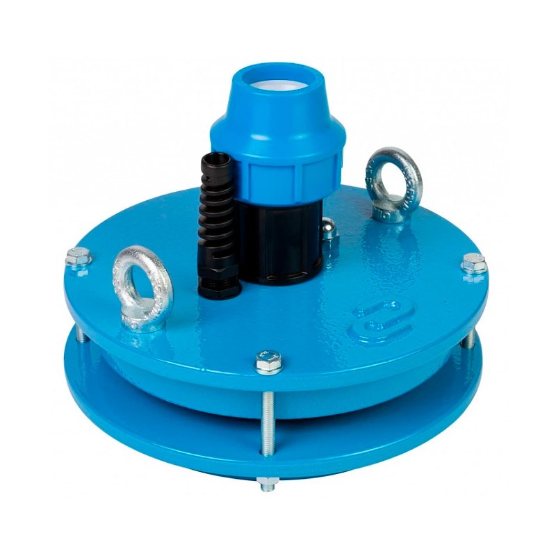 Для монтажа оголовка не требуется сварка Упрощает эксплуатацию технического колодца и повышает надежность подвешивания насоса Благодаря рым-болтам возможна установка с помощью лебедки или других механизмов |