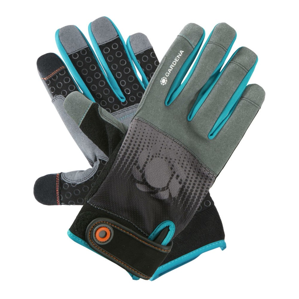 <div class="catalog-product-attributes__white-gradient"></div> Перчатки рабочие Gardena размер L предназначены для тяжелой работы с садовым инструментом. Для надежной фиксации инструмента ладонь перчаток покрыта силиконом. Дополнительный комфорт также обеспечивает мягкая подкладка на ладони. На запястье предусмотрена застежка на липучке. Также предусмотрена возможность управлять смартфоном или планшетом кончиками большого и указательного пальцев, не снимая перчатки. |