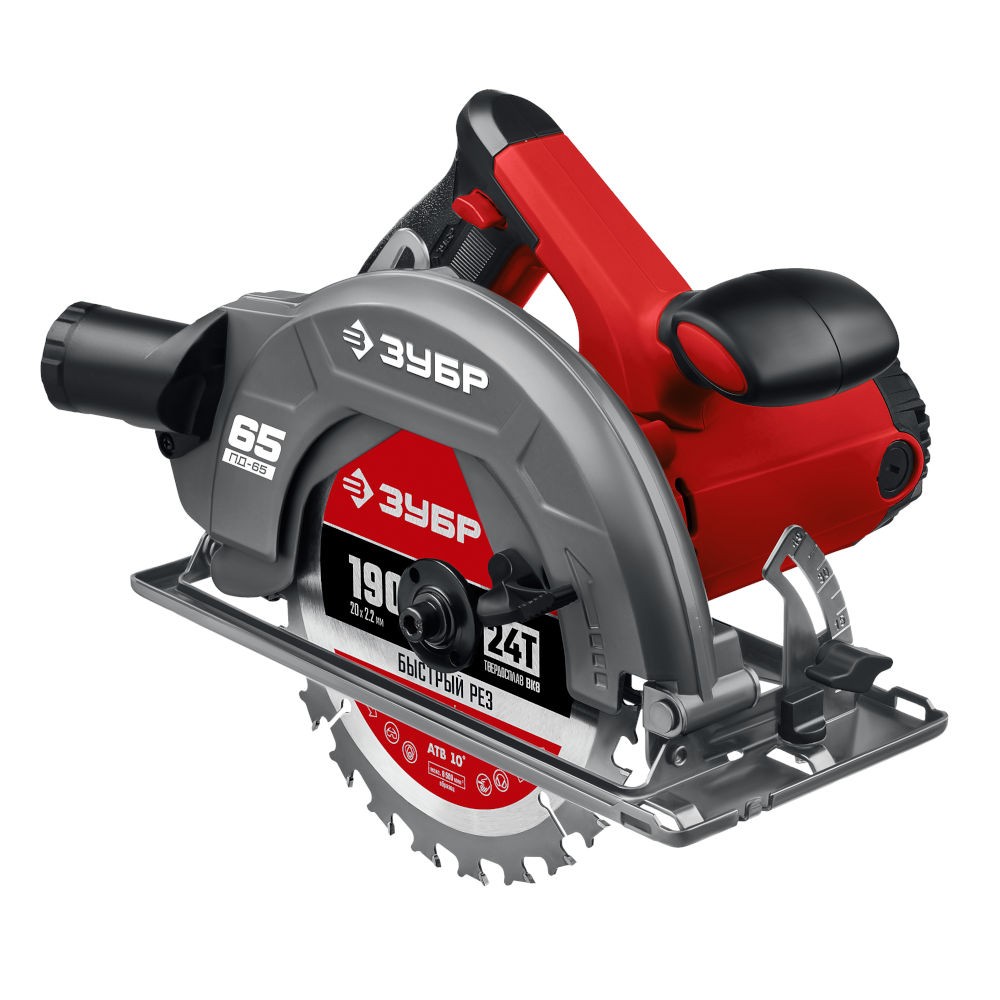 Пила дисковая ЗУБР ПД-65 - усовершенствованная модель пилы серии Мастер. Улучшенная конструкция с более мощным двигателем обеспечивает пиление на глубину до 65мм, что позволяет резать фанеру, панели и доски большинства типоразмеров. Эргономика рукояток делает работу удобной, а запас мощности и точность реза дарят удовольствие от работы. Инструмент может применяться для распиловочных работ по дереву и иным материалам (при установке соответствующего диска) под различными углами, а также под наклоном.
