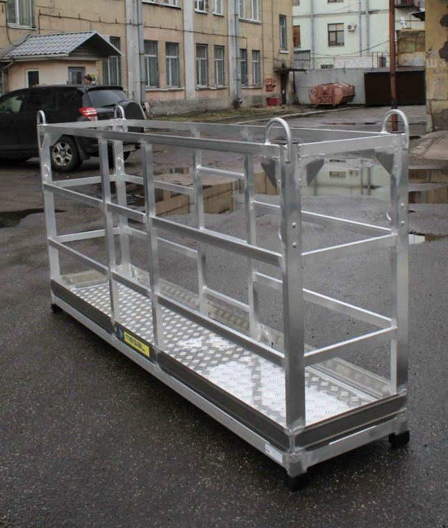 Площадка рассчитана на двух человек Рабочая нагрузка 200 кг Испытательная нагрузка превышает нормативную на 100% Рабочая площадка размером 2500х550 мм Удобные зацепы для подъема и перемещения площадки Петли для крепления страховочного ремня Высокий ресурс |