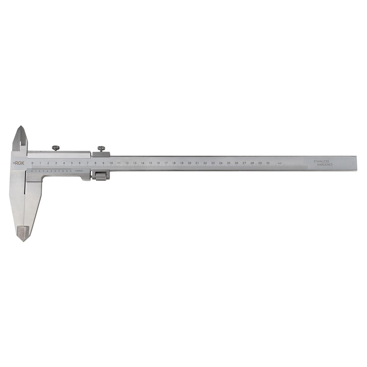 <div class="catalog-product-attributes__white-gradient"></div> Штангенциркуль RGK SCMM-300 – двухсторонний механический измеритель с отсчетом по нониусу, с рабочим диапазоном до 300 мм. Подобно ШЦ-I по ГОСТ 166, он выполнен с губками с кромочными поверхностями для определения внутренних и внешних размеров, но без глубиномера, и дополнительно оснащается приспособлением для тонкой установки рамки. Основными сферами применения инструмента является производство и ремонт изделий и деталей с механической обработкой. Повышенная детализация Нониусная шкала на 50 делений позволяет считывать показания с повышенным разрешением, до 0,02 мм – таким же, какое обеспечивают более дорогие штанген-инструменты с круговой шкалой и стрелочным указателем. Для максимально точных замеров Механизм тонкой подводки рамки с микрометрическим ходом служит для быстрого и точного задания требуемого расстояния между измерительными поверхностями инструмента, с закреплением их положения с помощью винтового фиксатора – для проверки соответствия |