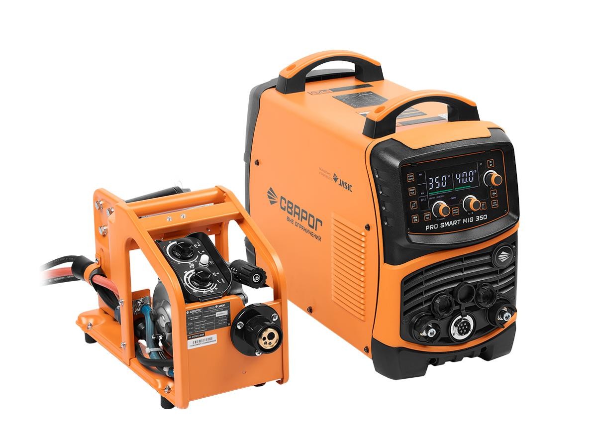 PRO SMART MIG 350 (N216S) — инверторный сварочный аппарат предназначен для полуавтоматической сварки в среде защитных газов (MIG/MAG), сварки порошковой проволокой (FCAW), ручной дуговой сварки покрытым электродом (ММА), а также аргонодуговой сварки неплавящимся электродом (TIG DC) при -30 °C.