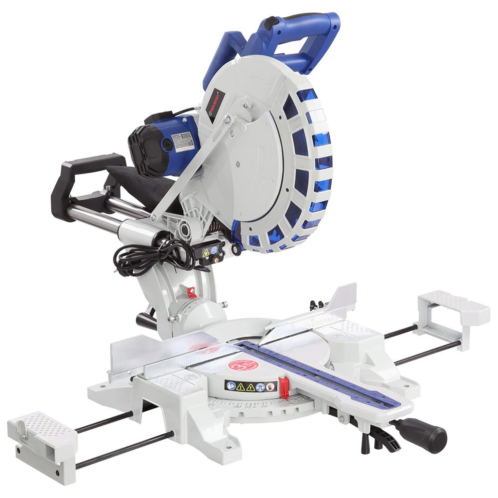 Поворотный рабочий стол из алюминиевого литья Регулируемый ограничитель глубины пропила Раздвижные расширители рабочего стола Пильный узел имеет наклон в обе стороны от -45 до +45 град Механизм блокировки вала для облегчения замены пильного диска Регулировка наклона и поворота пильного диска Стопор основных углов поворота Прижим заготовки Лазерный указатель |