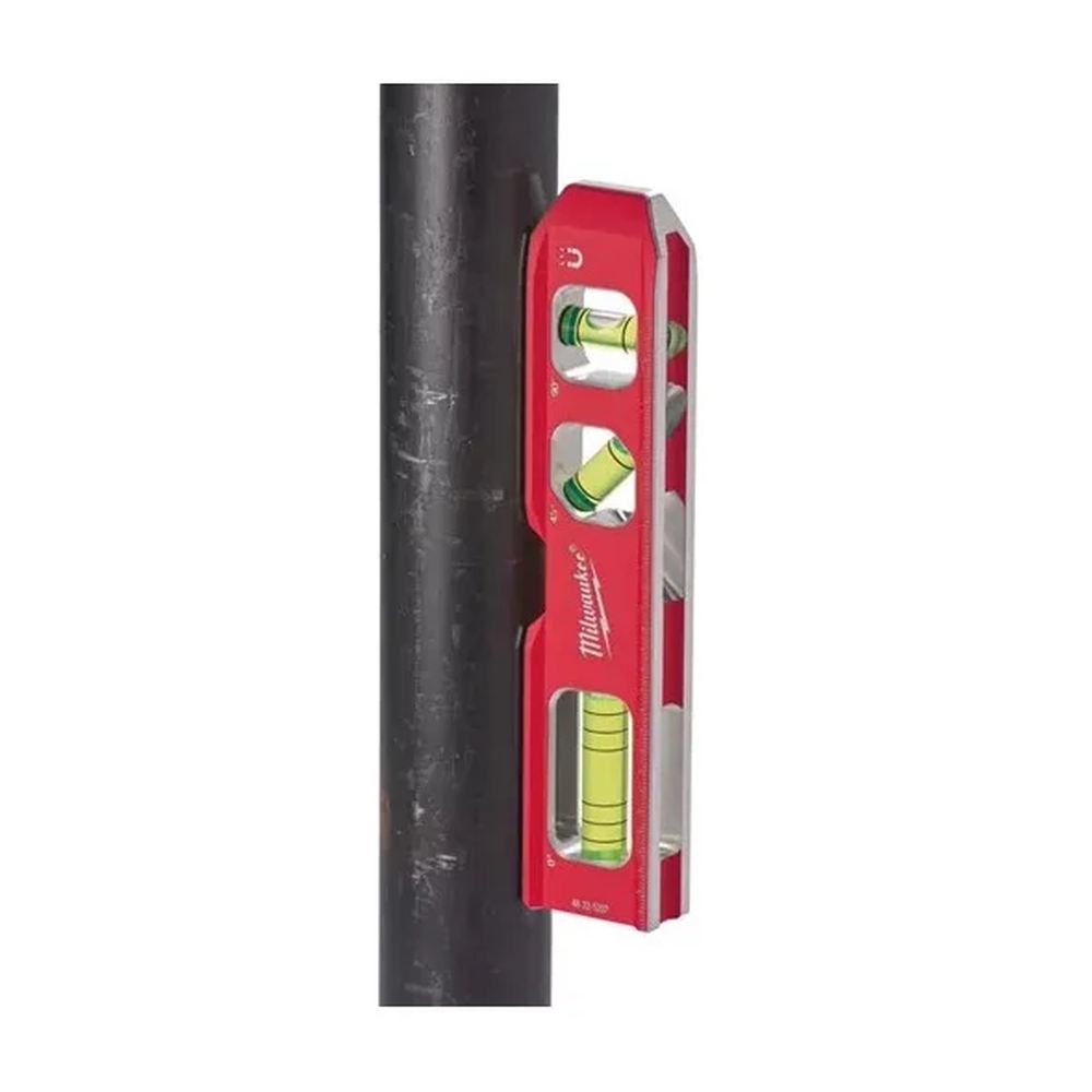 Уровень Milwaukee Billet Torpedo (097) оснащен усиленными пузырьковыми колбами с увеличенной областью просмотра. Специальные пазы делают инструмент более устойчивым на трубах, в том числе и не магнитных. Редкоземельные магниты обеспечивают надежное притяжение.
