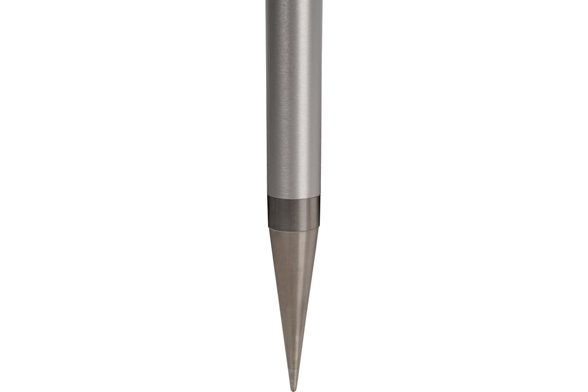 Выдвижная конструкция, с внешней трубкой диаметром 25мм и внутренней 19-миллиметровой секцией, изготовлена из алюминиевого сплава, совмещая в себе прочность и сравнительно небольшой вес. Для повышения износостойкости заостренный нижний наконечник упрочнен методом термообработки.