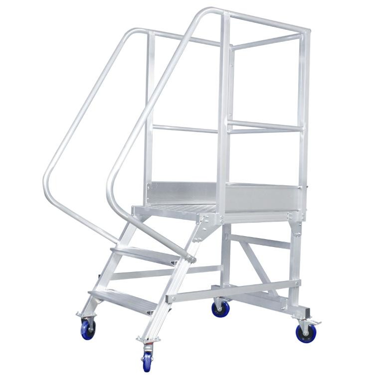 Легкий вес Максимальная нагрузка 150кг Мобильность Безопасные противоскользящие ступени из рифленого профиля Простая и быстрая сборка без специального инструмента |