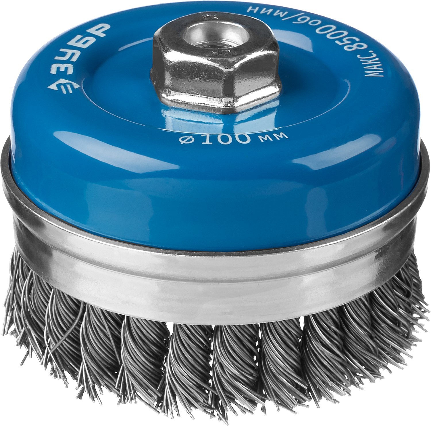 ЗУБР 100 мм, жгутированная стальная проволока 0.8 мм, усиленная чашечная щетка-крацовка для УШМ, Профессионал (35271-100)