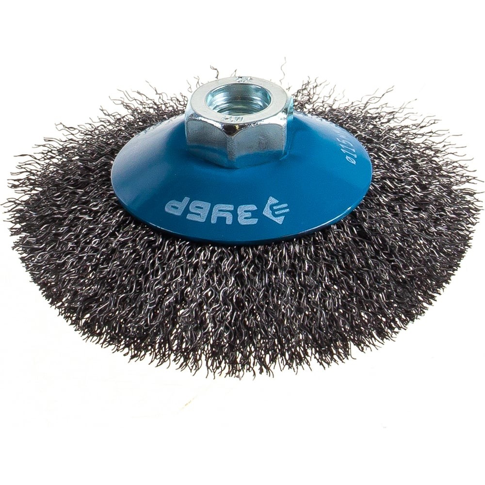 ЗУБР 115 мм, витая, стальная проволока 0.3 мм, коническая щетка-крацовка для УШМ, Профессионал (35265-115)