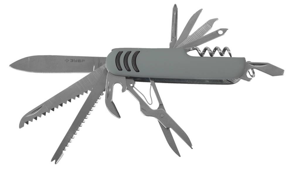 ЗУБР 12 в 1, обрезиненная рукоятка 90 мм, складной, мультитул, многофункциональный нож (47780)