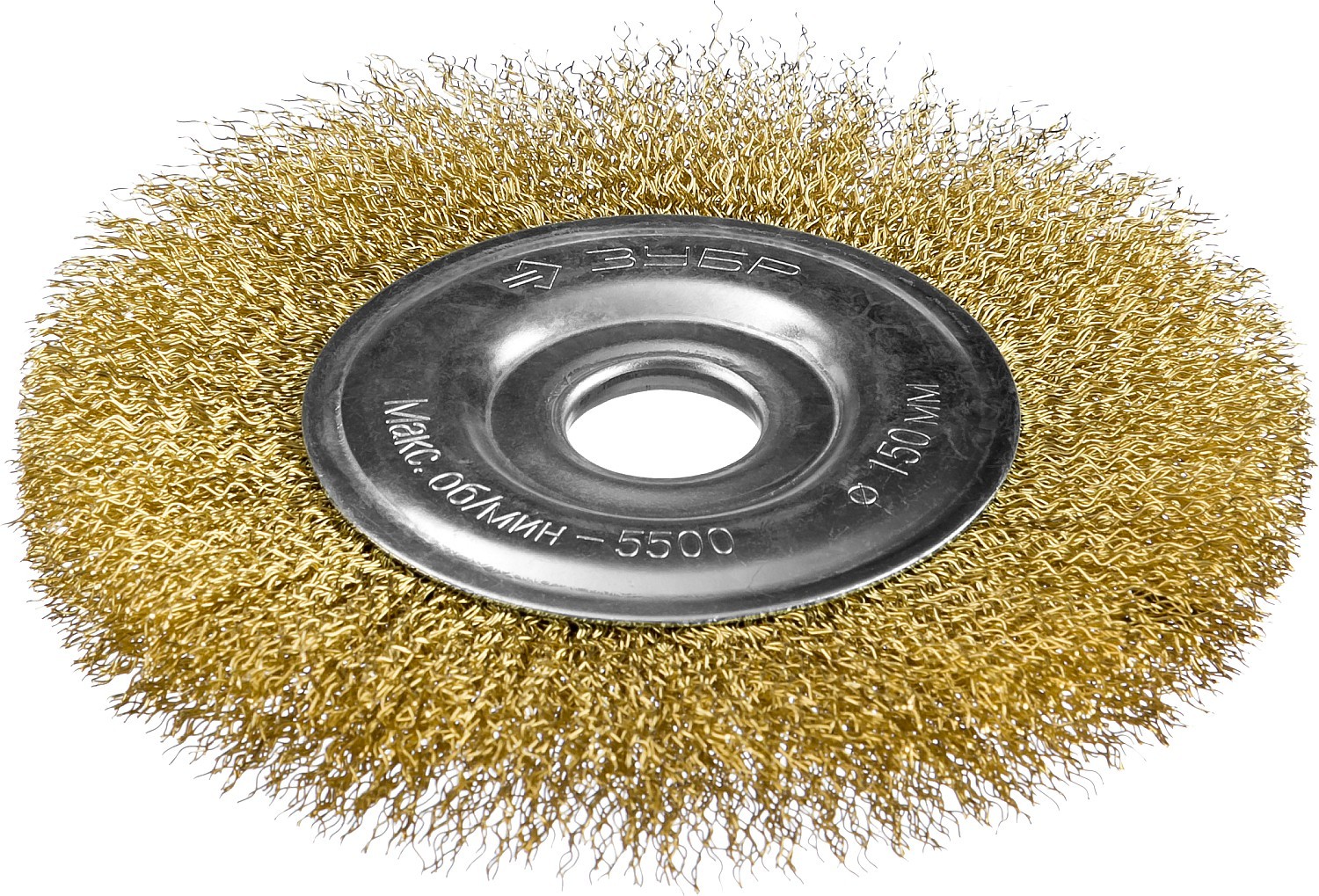 ЗУБР 150 мм, витая латунированная, стальная проволока 0.3. щетка дисковая для УШМ, Профессионал (35187-150)