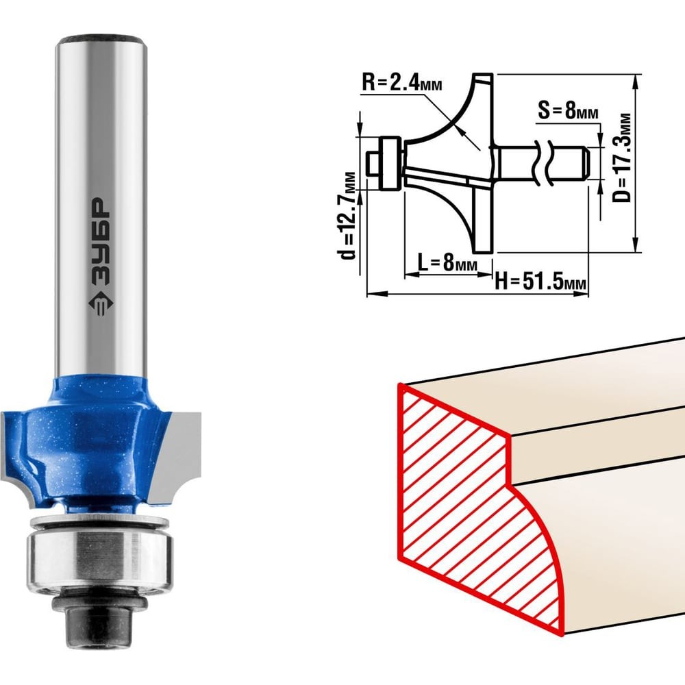 ЗУБР 17.3 x 8 мм, радиус 2.4 мм, фреза кромочная калевочная №1, Профессионал (28701-17.3)