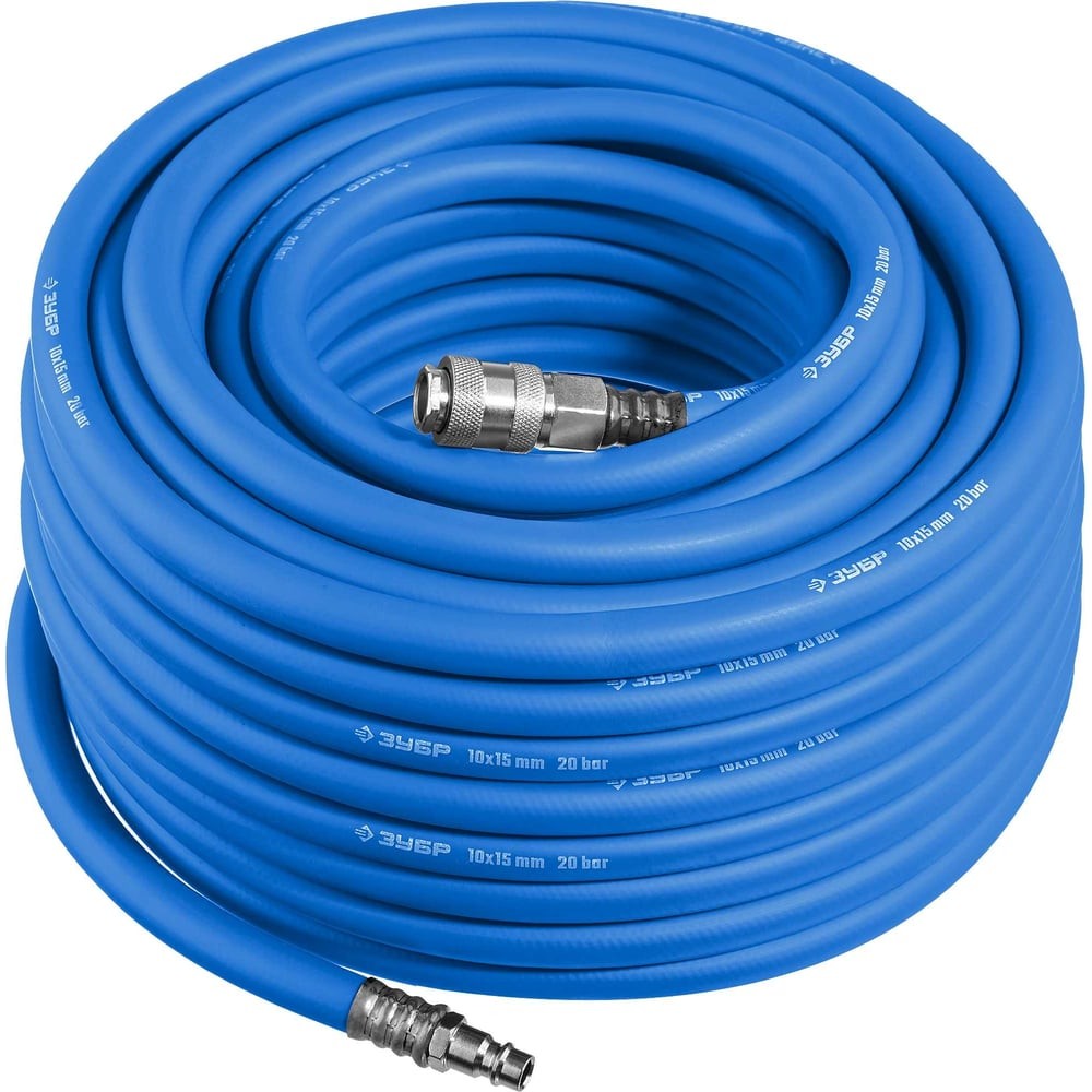 ЗУБР 20 м, 10 х 15 мм, 20 бар, воздушный шланг с фитингами рапид, Профессионал (6481-20)