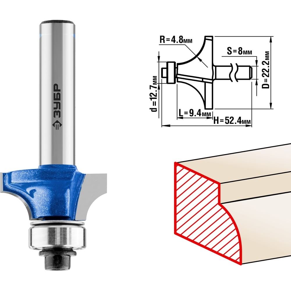 ЗУБР 22.2 x 9.4 мм, радиус 4.8 мм, фреза кромочная калевочная №1, Профессионал (28701-22.2)
