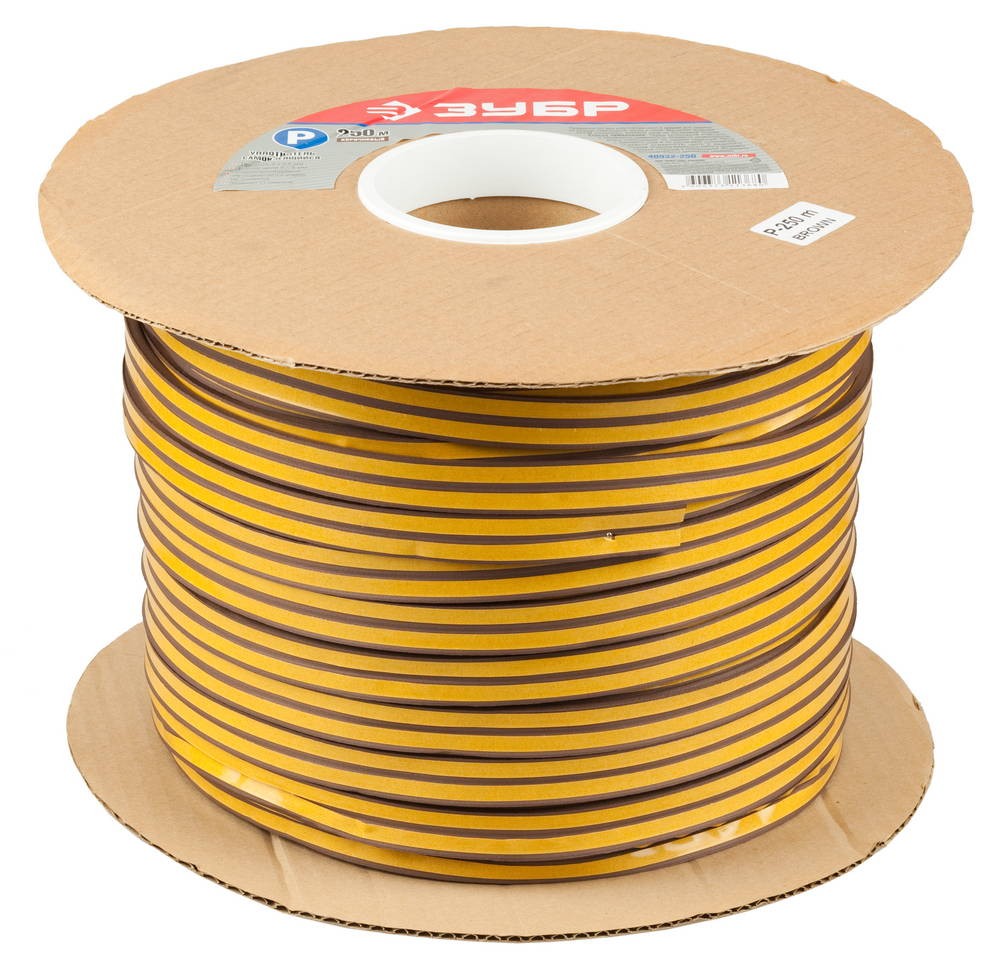 ЗУБР 250 м, P-профиль, размер 9 х 5.5 мм, коричневый, самоклеящийся резиновый уплотнитель (40932-250)
