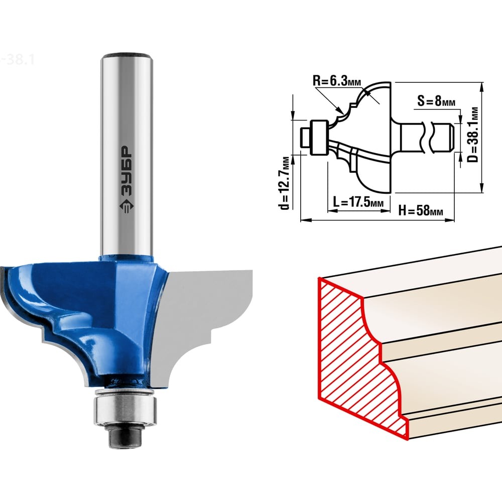 ЗУБР 38.1 x 17.5 мм, радиус 6.3 мм, фреза кромочная калевочная №3, Профессионал (28704-38.1)