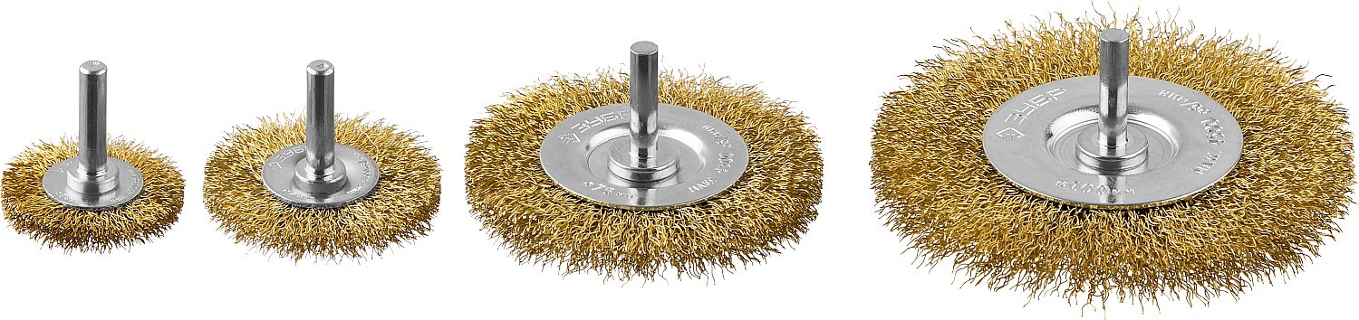 ЗУБР 38/50/75/100 мм, витая латунированная, стальная проволока, набор дисковых щеток крацовок для дрели, Профессионал (3521-H4)