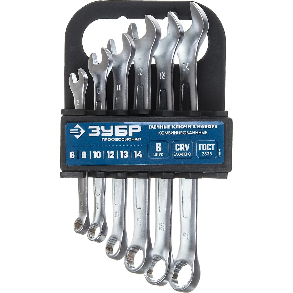 ЗУБР 6 шт, 6 - 14 мм, набор комбинированных гаечных ключей, Профессионал (27088-H6)