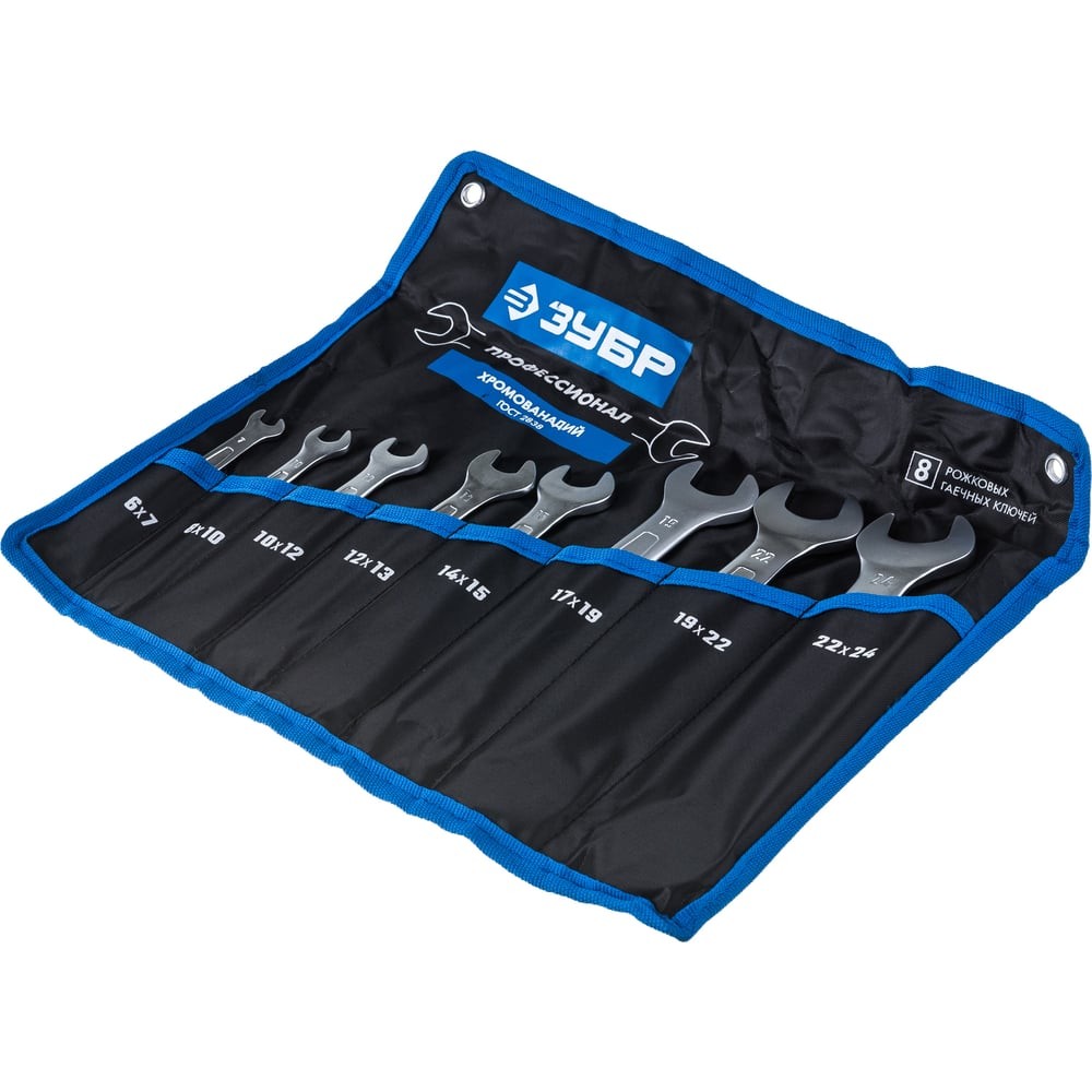 ЗУБР 8 шт, 6 - 24 мм, набор рожковых гаечных ключей, Профессионал (27010-H8)