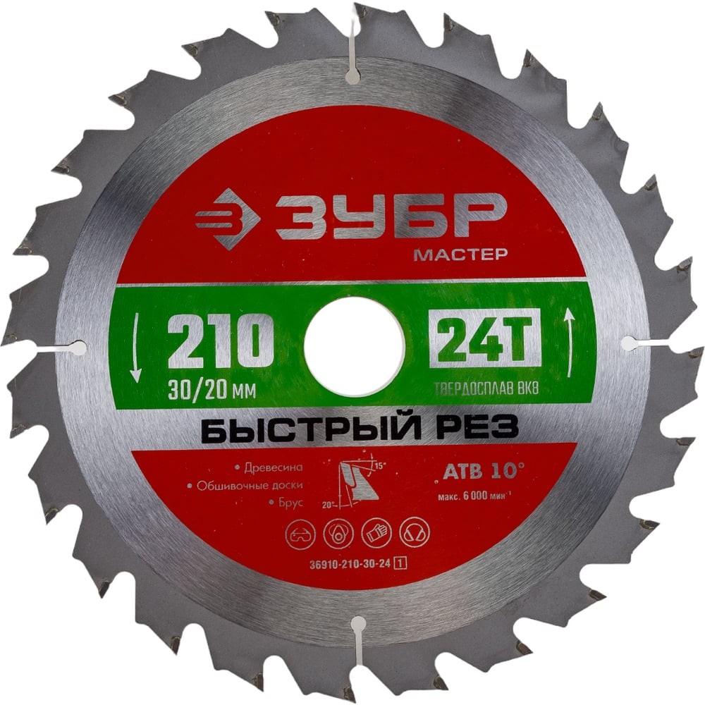 ЗУБР Быстрый рез, 210 x 30/20 мм, 24Т, пильный диск по дереву (36910-210-30-24)