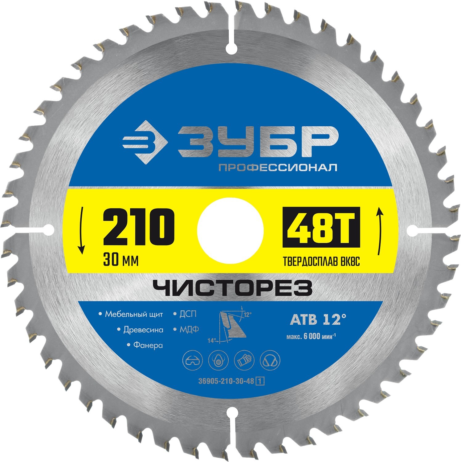 ЗУБР Чисторез, 210 x 30 мм, 48Т, пильный диск по дереву, Профессионал (36905-210-30-48)