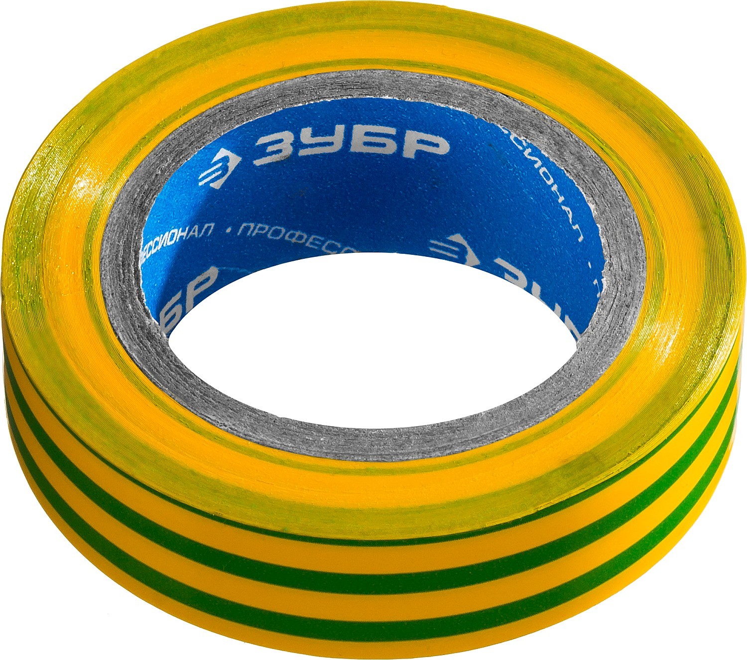 ЗУБР ЭЛЕКТРИК-10, 15 мм х 10 м, 6 000 В, желто-зеленая, не поддерживает горение, изолента ПВХ, Профессионал (1233-6)