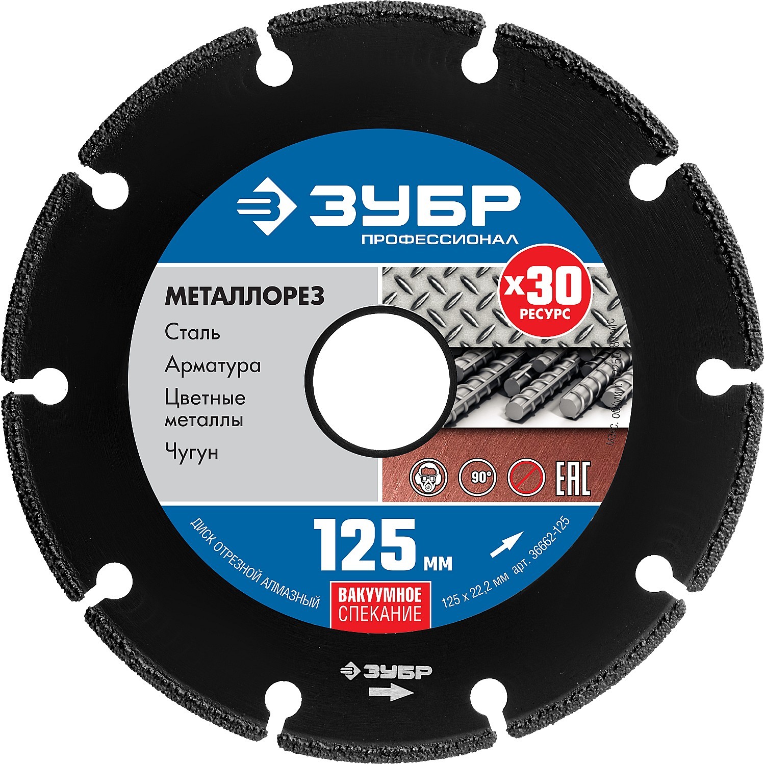 ЗУБР МЕТАЛЛОРЕЗ 125 мм, вакуумное спекание, алмазный диск по металлу, Профессионал (36662-125)