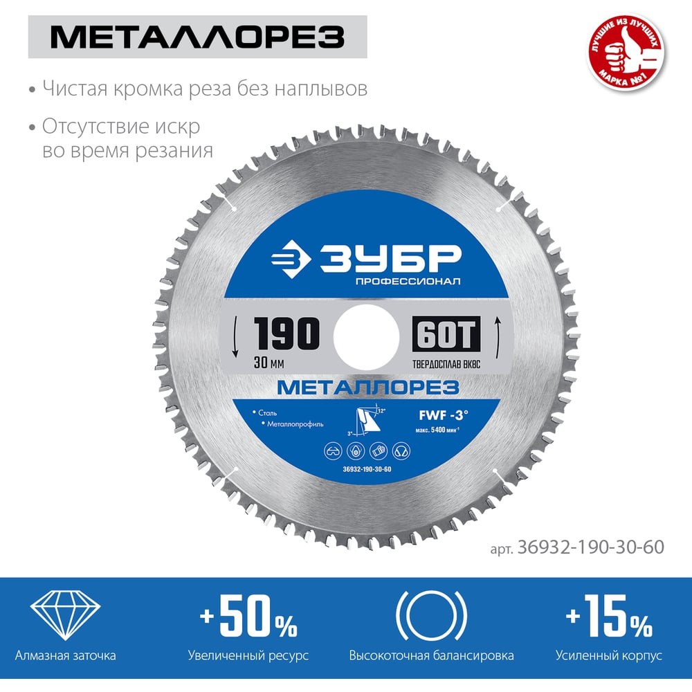 ЗУБР Металлорез, 190 х 30 мм, 60Т, пильный диск по металлу и металлопрофилю, Профессионал (36932-190-30-60)